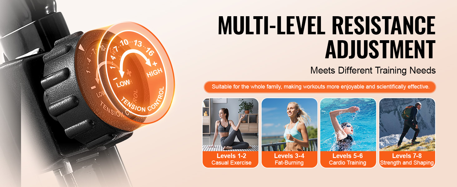Tento vzpriamený skladací bicykel na cvičenie je vybavený viacúrovňovým magnetickým odporom, ktorý uspokojí rôzne tréningové potreby. Je vhodný pre celú rodinu, vďaka čomu je tréning pútavejší a vedecky účinnejší. Môžete si vybrať vhodnú úroveň intenzity, ktorá zodpovedá vašim tréningovým požiadavkám.