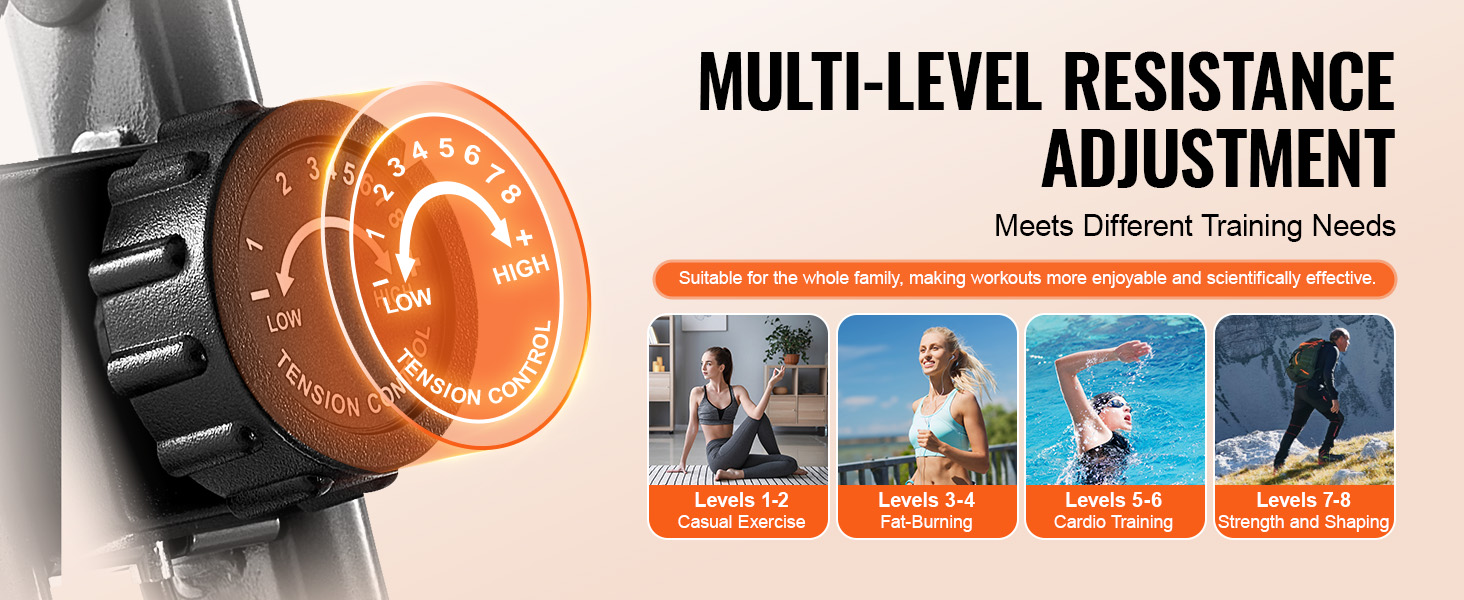 Tento vzpriamený skladací bicykel na cvičenie je vybavený viacúrovňovým magnetickým odporom, ktorý uspokojí rôzne tréningové potreby. Je vhodný pre celú rodinu, vďaka čomu je tréning pútavejší a vedecky účinnejší. Môžete si vybrať vhodnú úroveň intenzity, ktorá zodpovedá vašim tréningovým požiadavkám.