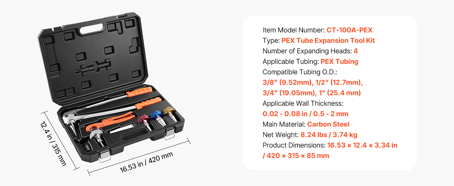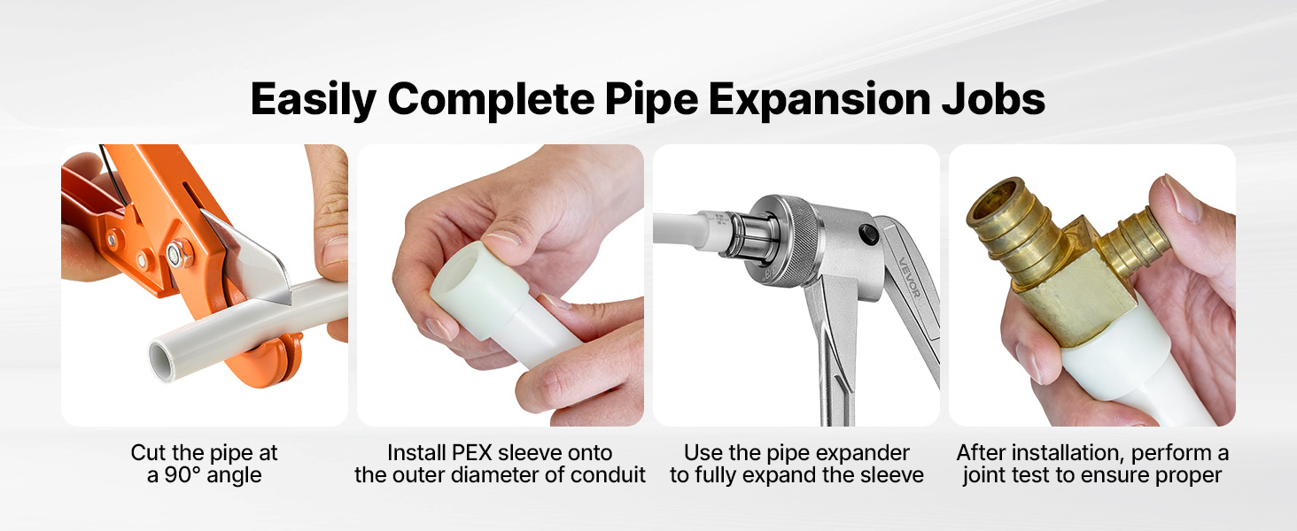 Súprava nástrojov na rozširovanie rúrok PEX od spoločnosti VEVOR je vybavená 4 rozširovacími hlavicami, ktoré zabezpečujú presné rozširovanie a bezpečné spoje bez úniku. Je vhodná pre inštalatérske projekty v domácnostiach aj komerčných priestoroch a zaručuje spoľahlivé rozširovanie v širokej škále aplikácií.