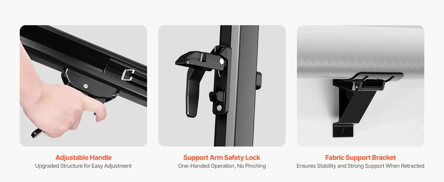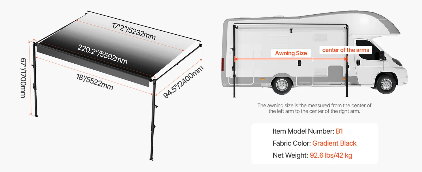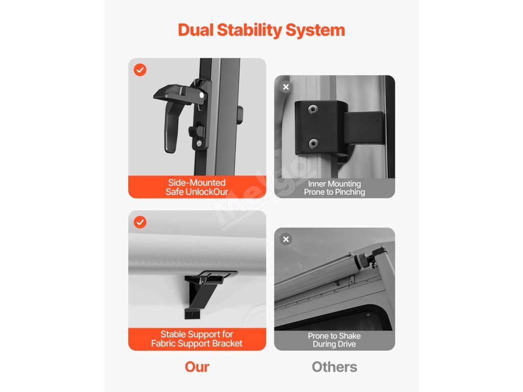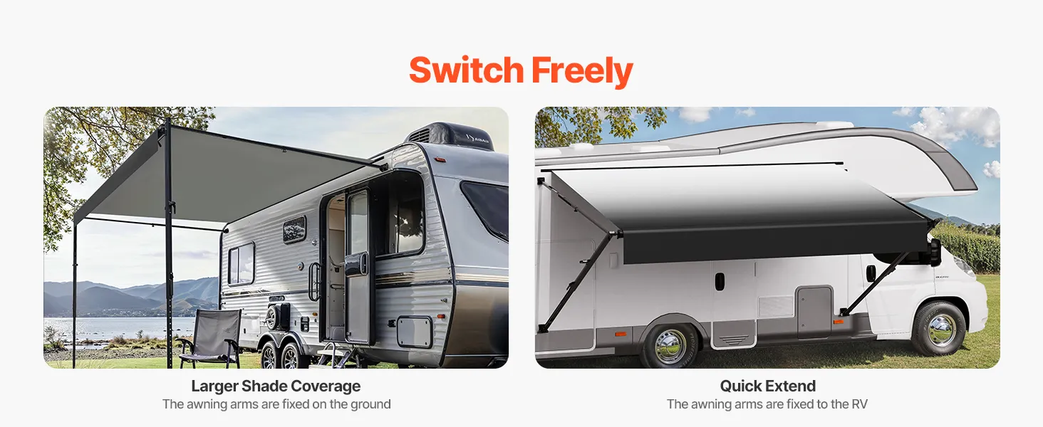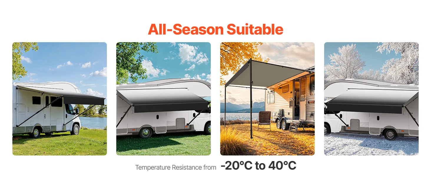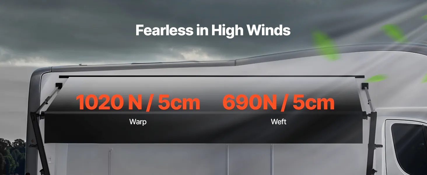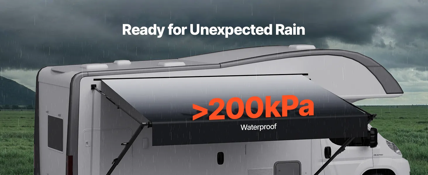 Ponúkame odolnú markízu pre obytné automobily s vylepšenou 18oz 4-vrstvovou PVC vinylovou tkaninou, ktorá je navrhnutá tak, aby odolala premenlivému počasiu. Vystužený rám z hliníkovej zliatiny je vodotesný, odolný proti korózii a zaisťuje dlhodobú stabilitu a trvanlivosť.