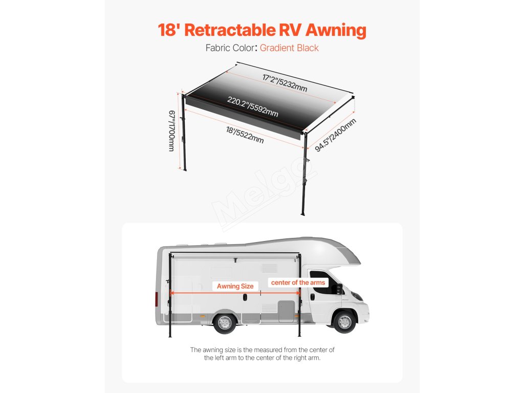 Manuálna markíza pre obytné vozidlá, výsuvná 18', hliníkový rám
