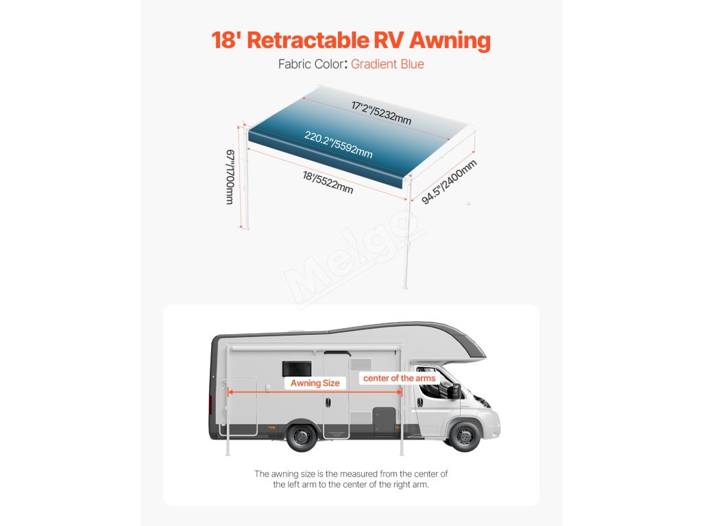 Manuálna markíza pre obytné vozidlo 18' s hliníkovým rámom, modrá