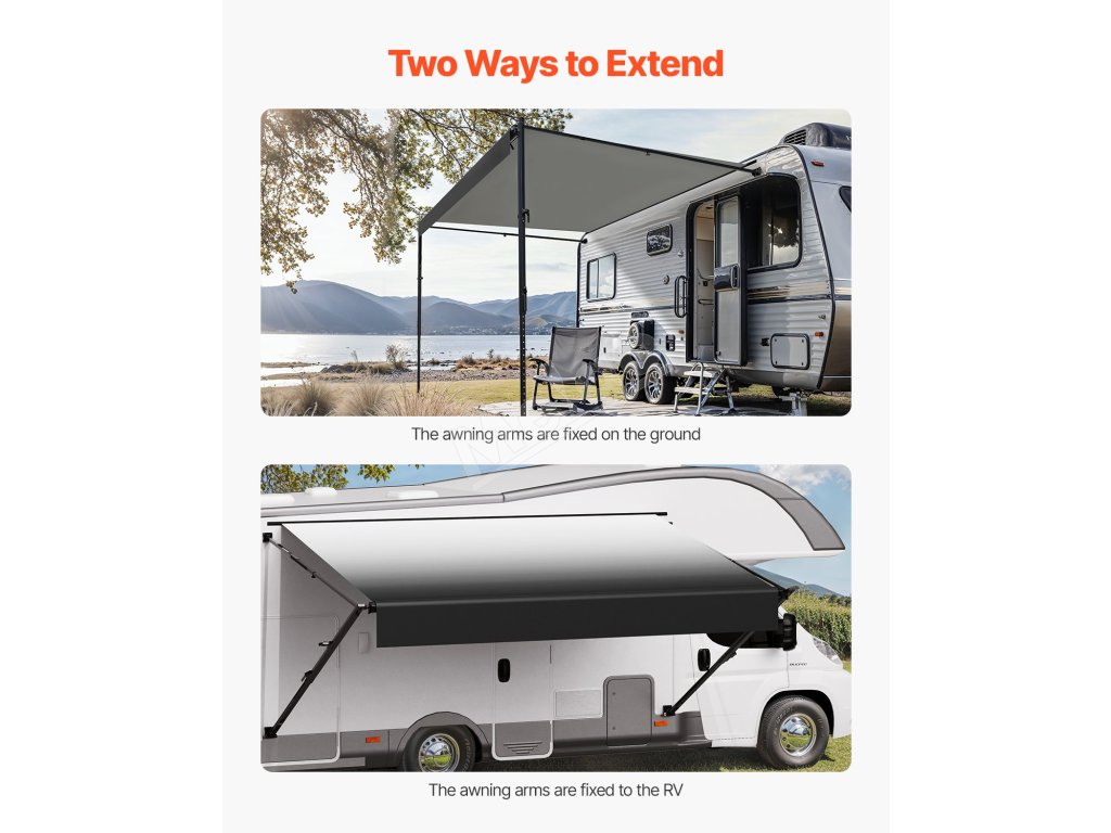 Ponúkame odolnú markízu pre obytné automobily s vylepšenou 18oz 4-vrstvovou PVC vinylovou tkaninou, ktorá je navrhnutá tak, aby odolala premenlivému počasiu. Vystužený rám z hliníkovej zliatiny je vodotesný, odolný proti korózii a zaisťuje dlhodobú stabilitu a trvanlivosť.