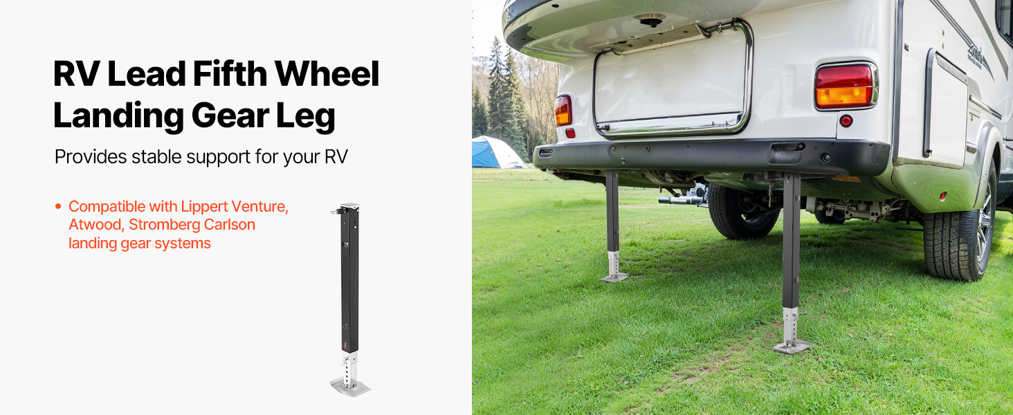 Táto náhradná olovená noha podvozku pre obytné automobily s piatym kolesom je špeciálne navrhnutá pre podvozkové systémy Stromberg Carlson, Lippert Venture a Atwood.