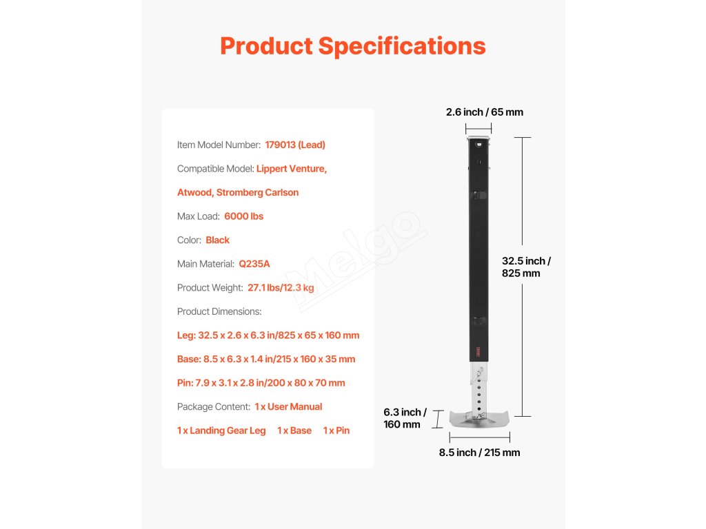 Pred nákupom si dvakrát skontrolujte značku a číslo dielu vášho obytného vozidla, aby ste sa uistili o presnej zhode. Po inštalácii táto podvozková noha poskytuje pevnú a stabilnú oporu na bezpečné parkovanie.