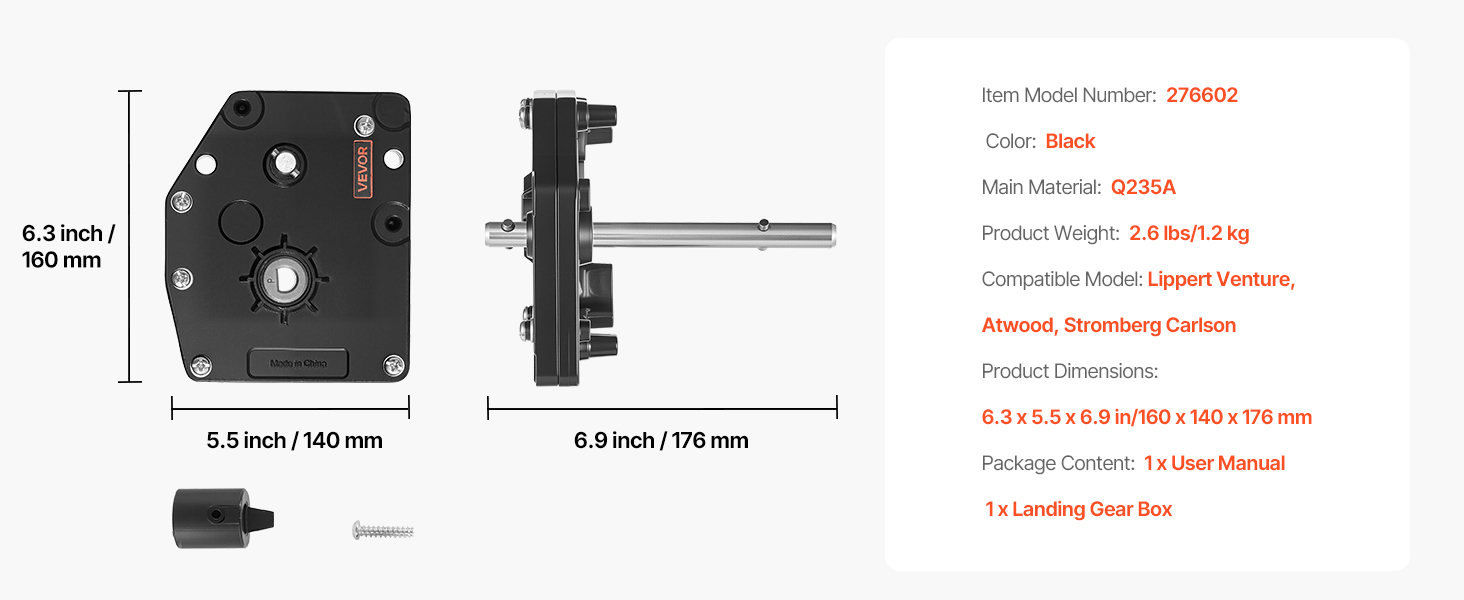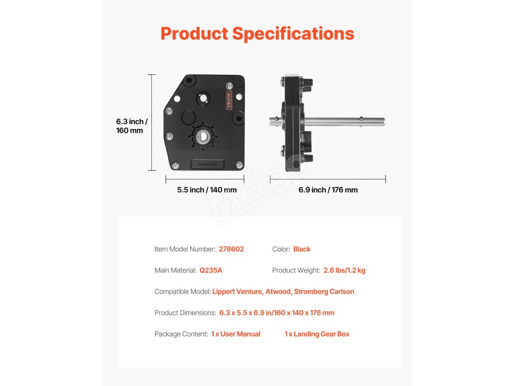 Prevodová skrinka pristávacej nohy pre príves, oceľová, nastaviteľná