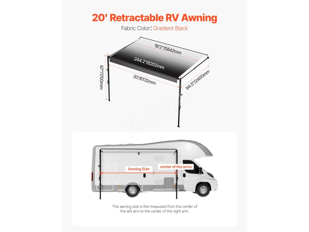 Ručná sťahovacia markíza 20' s hliníkovým rámom pre väčšinu karavanov