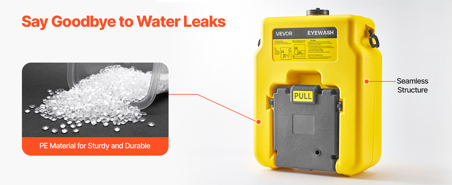 Naša stanica na umývanie očí je vyrobená procesom vyfukovania z jedného kusu, vďaka čomu nevznikajú švy a zvarové miesta. Vďaka tejto konštrukcii je pevnejšia a odolnejšia voči praskaniu alebo úniku v porovnaní s viacdielnymi montovanými výrobkami.