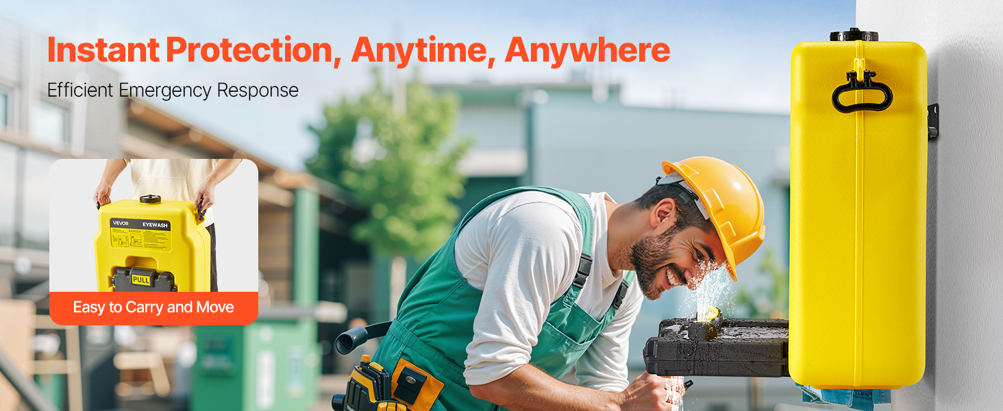 Naša prenosná stanica na výplach očí je vyrobená z antikorózneho PE materiálu a má nádrž s jednoduchou inštaláciou. Je kompaktná a skladná, preto je ideálna na staveniská a dočasné pracoviská. Je v súlade s normou ANSI Z358.1-2014 a ponúka rýchlu núdzovú reakciu pre laboratóriá, továrne a školy.
