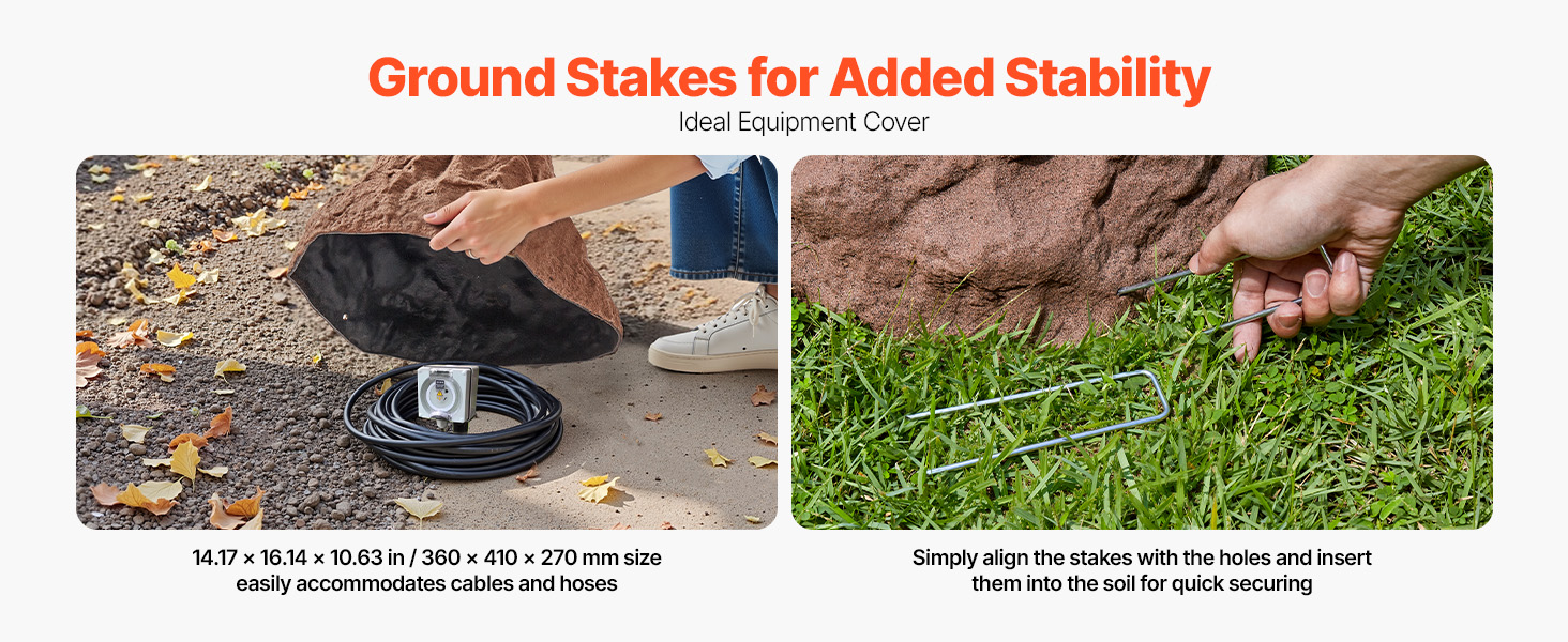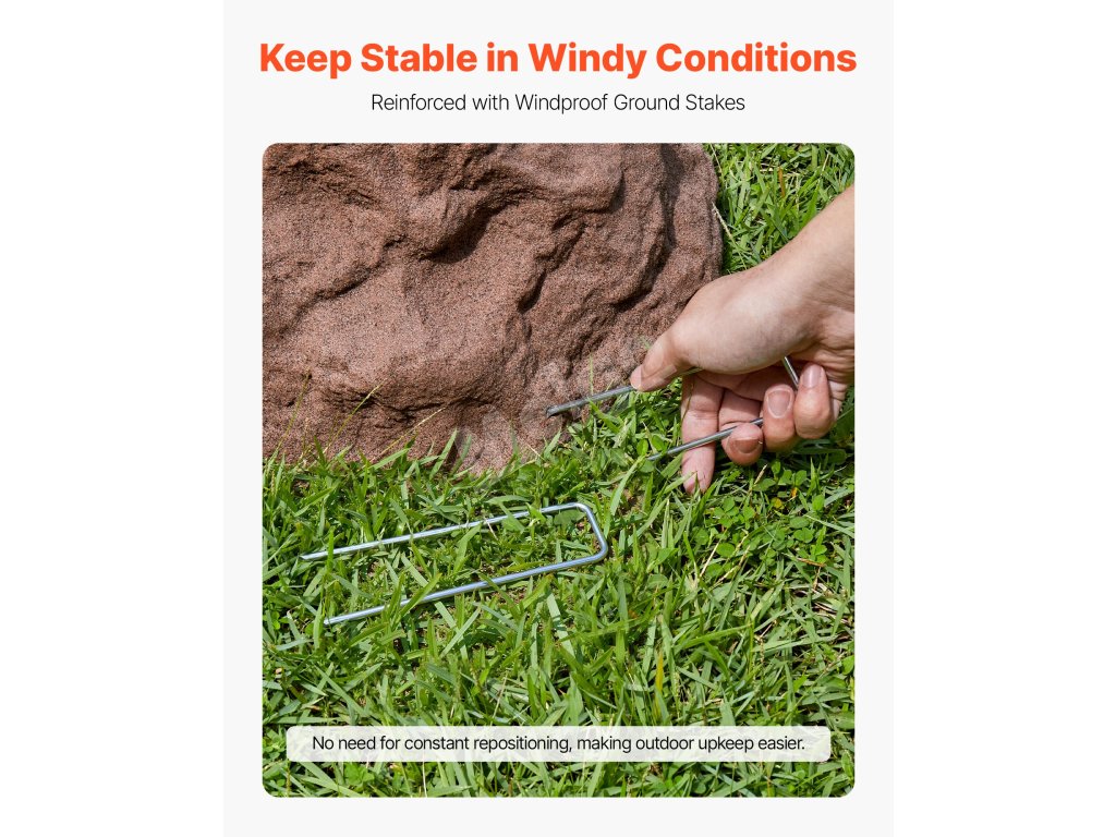 Súčasťou balenia sú zemné kolíky, ktoré zabezpečujú pevné uchytenie krytu a zabraňujú jeho posúvaniu aj za veterného počasia. Tento kryt z umelého kameňa tesne prilieha k zemi a komplexne chráni kanalizačné poklopy, potrubia a iné zariadenia.