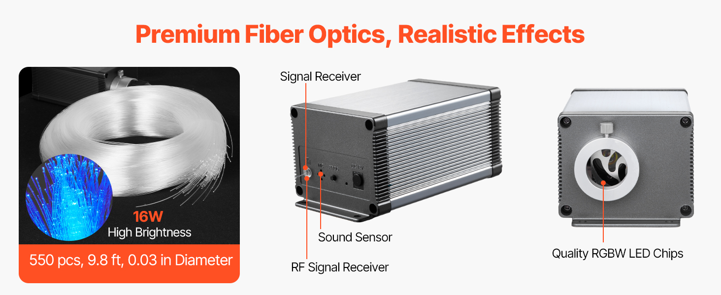 | Množstvo optických vlákien a špecifikácie | 550 ks, 0,03 palca / 0,76 mm, 9,8 stopy / 3 m |