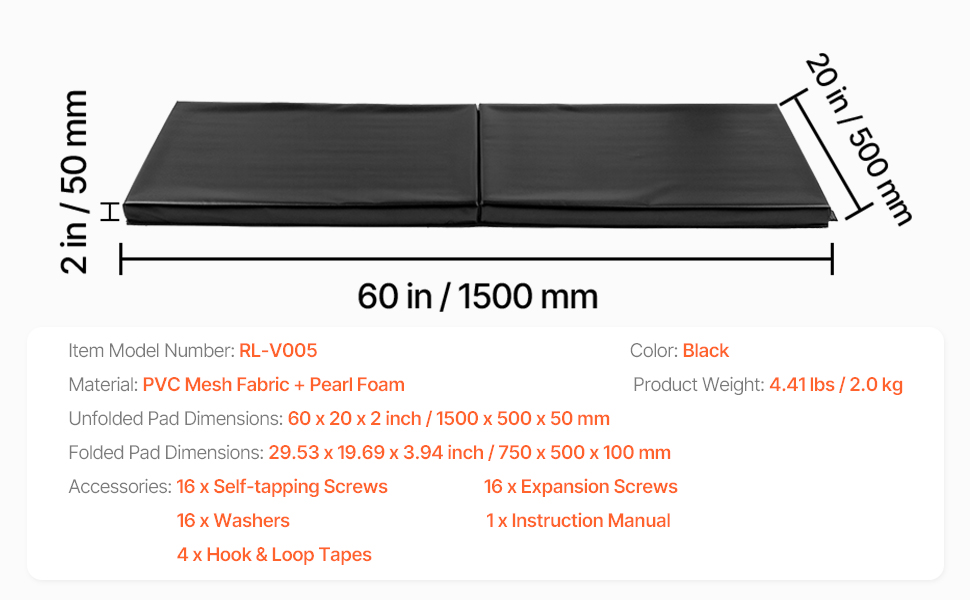 | Rozmery rozloženej podložky | 60 x 20 x 2 palce / 1500 x 500 x 50 mm |