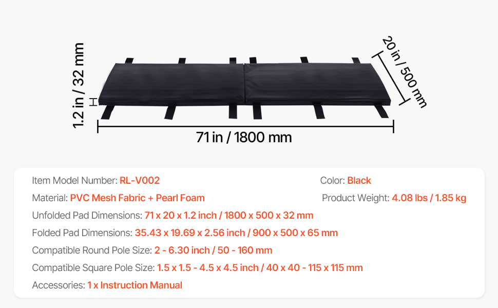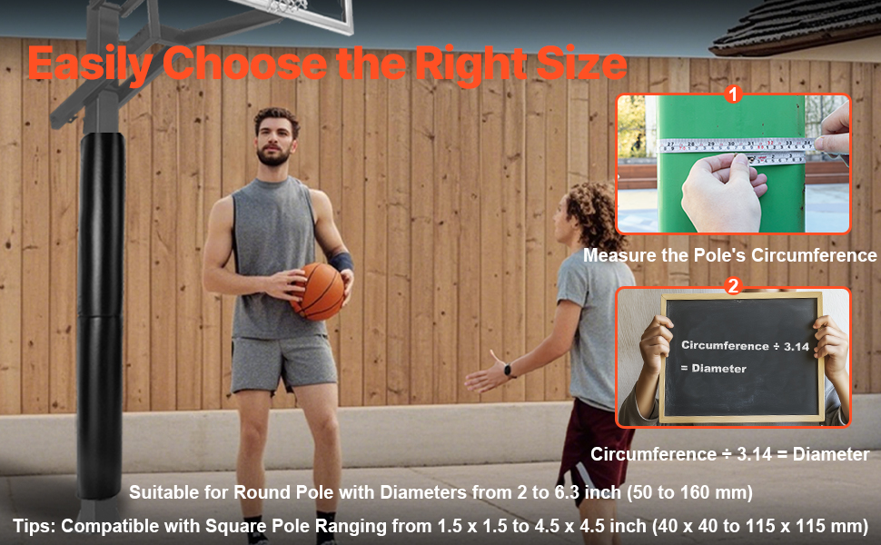 Toto polstrovanie basketbalovej tyče uľahčuje meranie obvodu tyče a hodí sa na okrúhle tyče s priemerom 2-6,3 palca (50-160 mm). Hodí sa aj na štvorcové tyče s rozmermi 1,5x1,5-4,5x4,5 palca (40x40-115x115 mm). Vyberte si rýchlo a presne pre ideálne prispôsobenie a lepší používateľský zážitok.