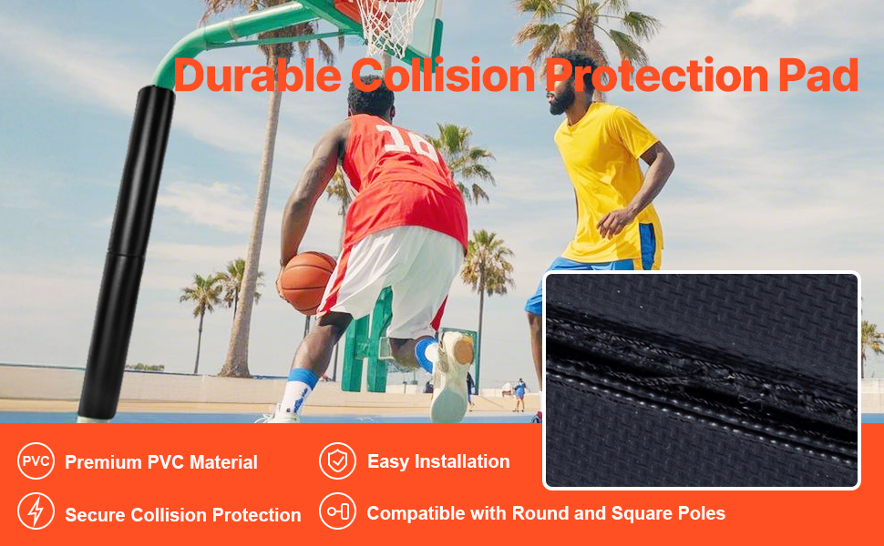Tento chránič basketbalových tyčí vyrobený z prvotriedneho PVC materiálu je odolný proti opotrebovaniu a roztrhnutiu, takže časom nevybledne ani sa nedeformuje. Je vysoko kompatibilný, hodí sa na okrúhle aj štvorcové tyče, čím znižuje riziko nárazu pre športovcov. Ľahko sa inštaluje a poskytuje bezpečnosť pri každej hre.