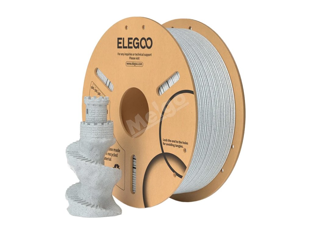 Filament vo farbe mramoru od spoločnosti ELEGOO vám umožní vytvárať jedinečné modely s realistickým kamenným povrchom. Vďaka prísadám, ktoré dodávajú povrchu charakteristický mramorový efekt, získajú výtlačky estetický vzhľad, ktorý je ideálny na dekorácie, figúrky alebo architektonické makety. Materiál je založený na PLA (polylaktid - biologicky odbúrateľný plast na rastlinnej báze), takže je šetrný k životnému prostrediu. Na cievke je 1 kg vlákna, čo stačí na množstvo stredne veľkých a veľkých výtlačkov.