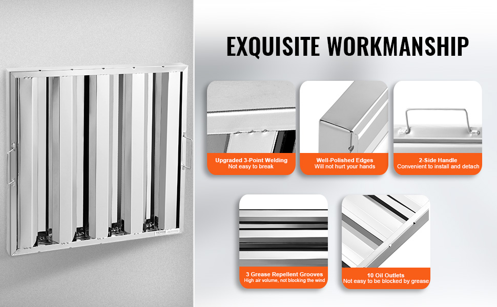 Náš odsávací filter je vyrobený z odolnej nehrdzavejúcej ocele 430 a je dostatočne pevný na to, aby zvládol každodenné kuchárske dobrodružstvá.