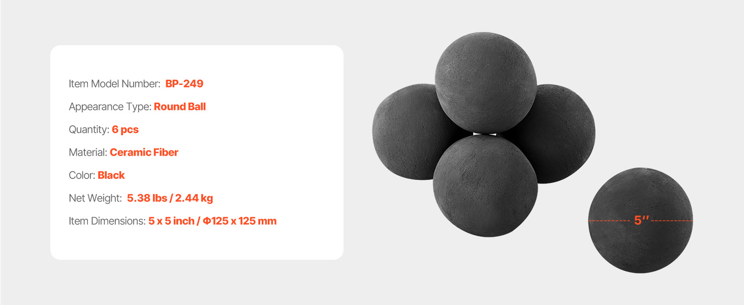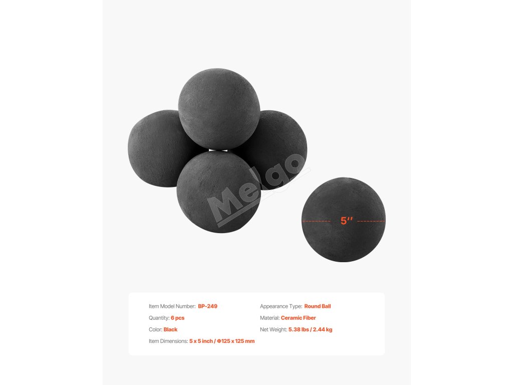 Keramické guľové kamene do ohniska 125 mm, 6 ks, čierne, plynové krby