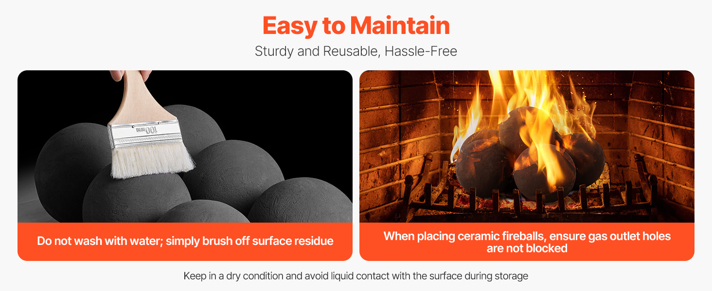Nie je potrebné umývanie, na čistenie stačí použiť kefku. Pri umiestňovaní keramických ohnivých gúľ dbajte na to, aby ste nezablokovali otvory na výstup plynu, aby sa zabezpečilo úplné spaľovanie!