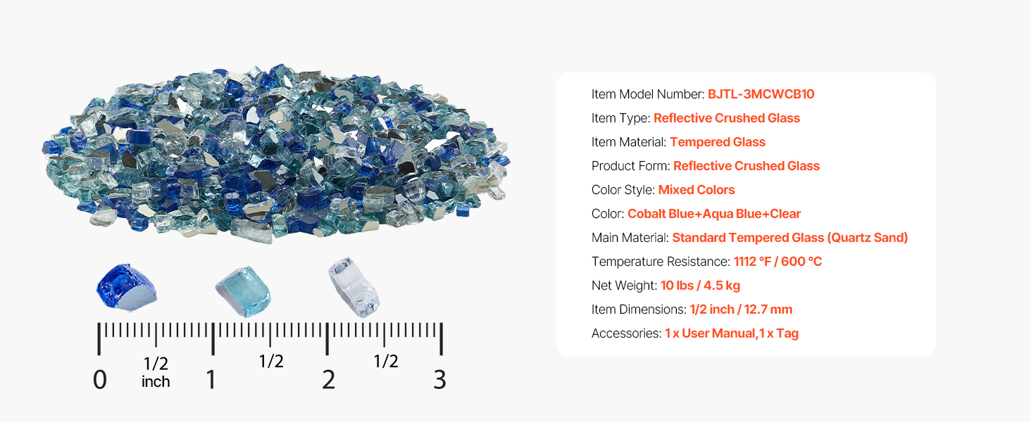 Sklenené kamene do krbu 10 lbs/4.5kg 1/2-inch/12.7mm kobalt+aqua+číra