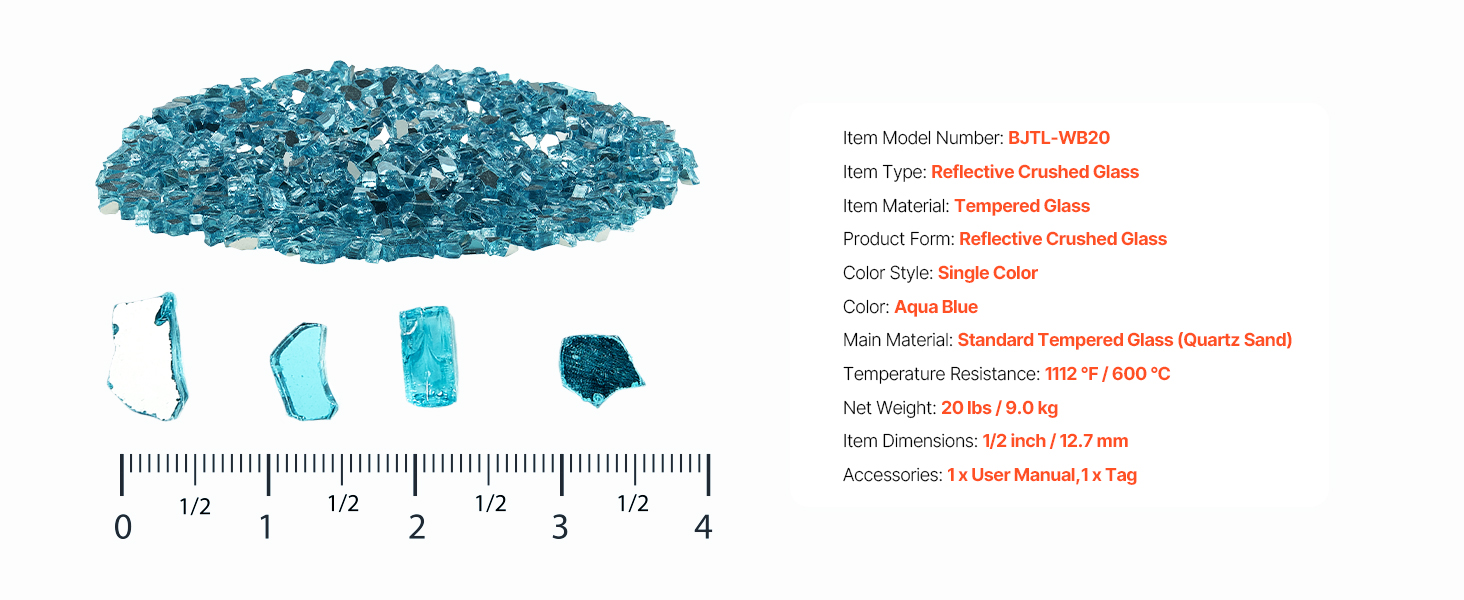 Sklenené kamienky do krbu 20 lbs / 9 kg, 1/2-inch / 12.7 mm aqua blue