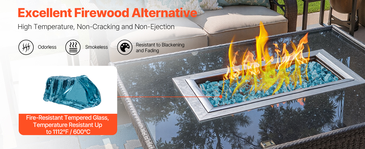 Toto ohnivé sklo je vyrobené z kremenného piesku a zvládne teploty až do 1112℉/ 600 ℃. Nerozpúšťa sa, netmavne, nevytvára dym ani zvláštne pachy, čo vám dáva pokoj pri každom použití.