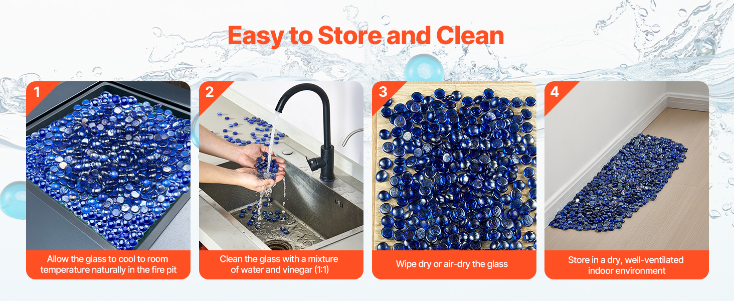 Tieto kamene do ohniska sa ľahko skladujú a nezaberajú veľa miesta. Stačí ich len rýchlo opláchnuť, aby zostali lesklé a svieže. Pred použitím sa uistite, že sú suché, aby sa zabránilo ich praskaniu alebo praskaniu.