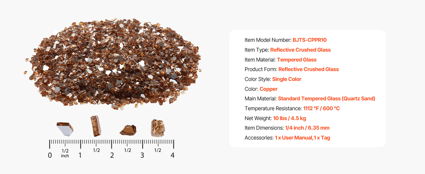 Sklenené kamienky do ohniska 10 lbs/4.5 kg 1/4-inch/6.35 mm medené