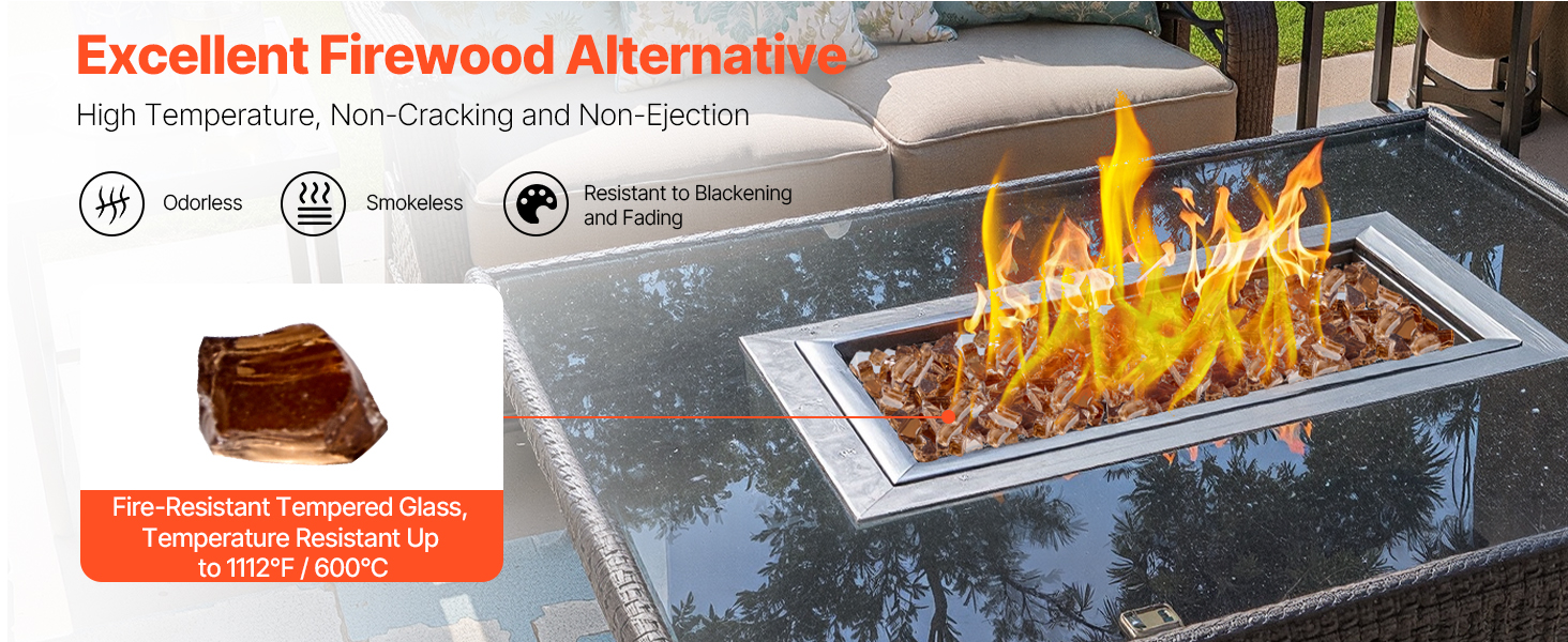 Toto ohnivé sklo je vyrobené z kremenného piesku a zvládne teploty až do 1112℉/ 600 ℃. Nepraská, netmavne, nevytvára dym ani zvláštne pachy, čo vám dáva pokoj pri každom použití.