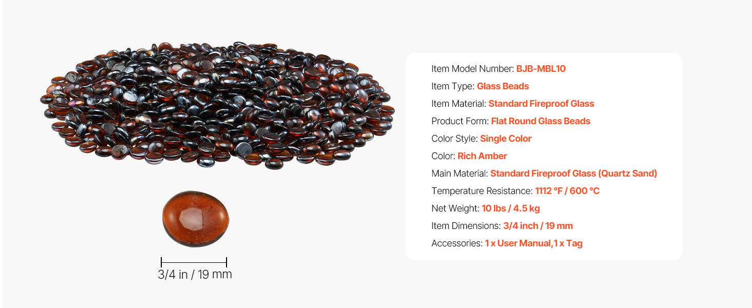 Sklenené kamienky do ohniska 10lbs/4.5kg, 3/4-inch/19.05 mm, jantarové