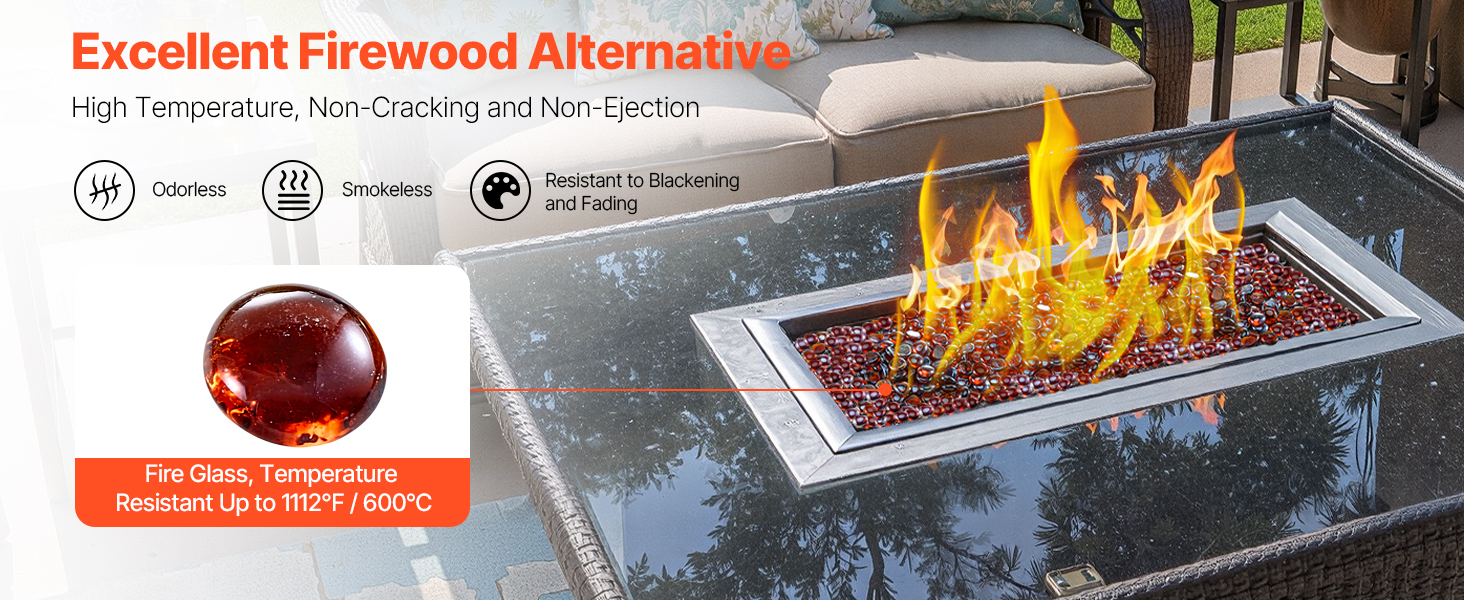 Toto ohnivé sklo je vyrobené z kremenného piesku a zvládne teploty až do 1112℉/ 600 ℃. Nepraská, netmavne, nevytvára dym ani zvláštne pachy, čo vám dáva pokoj pri každom použití.