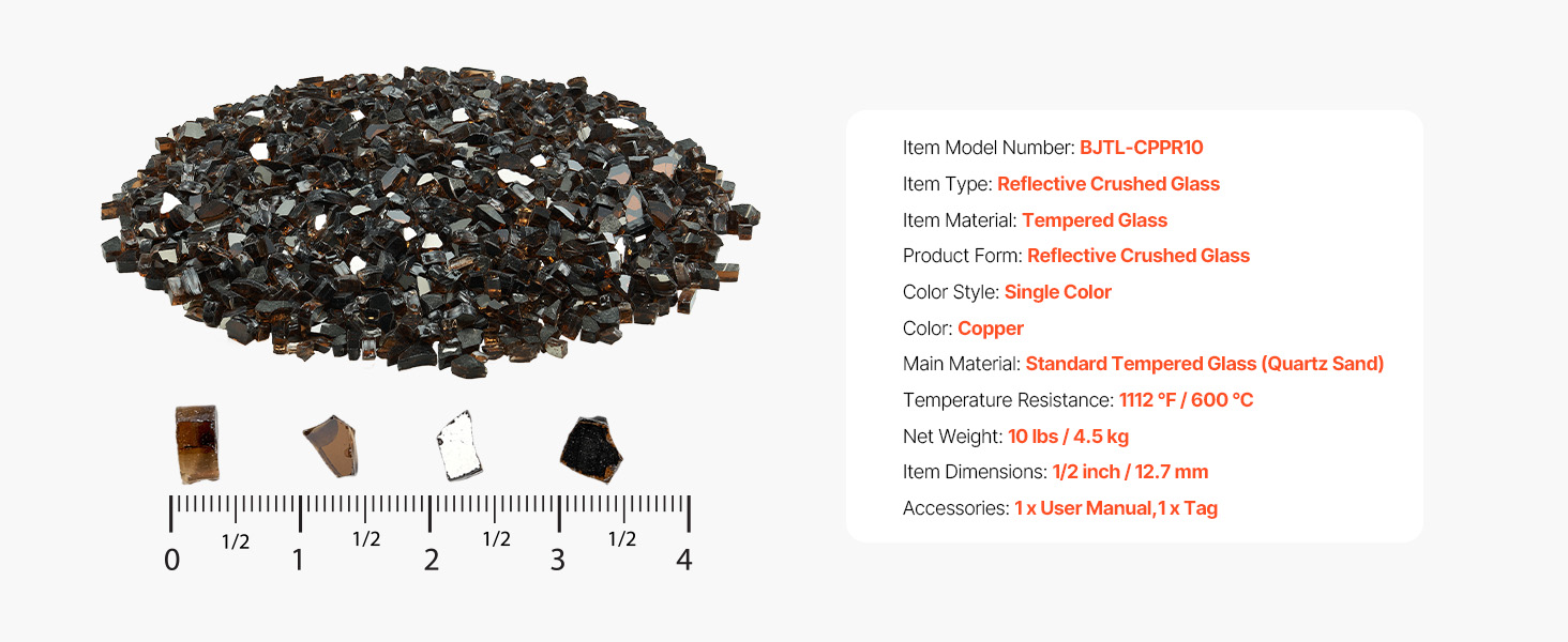 Sklenené kamienky do ohniska 4,5 kg 12,7 mm odolné reflexné medené