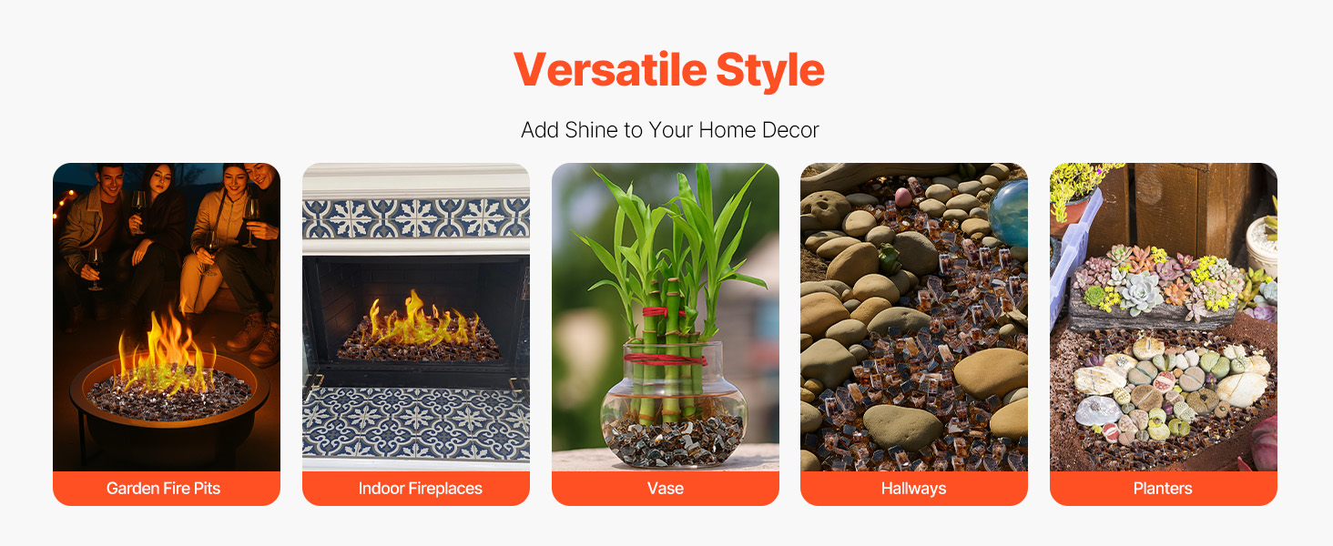 Naše žiarivé, farebné dekoratívne kúsky vyrobené z prvotriedneho ohňového skla sú odolné a zvládajú teplo. Nerozpúšťajú sa, nepraskajú, nevytvárajú dym ani popol. Stačí ich rýchlo utrieť a opäť získajú lesk. Sú ideálne do ohnísk, krbov a záhrad a bez námahy dodajú vášmu domovu iskru.