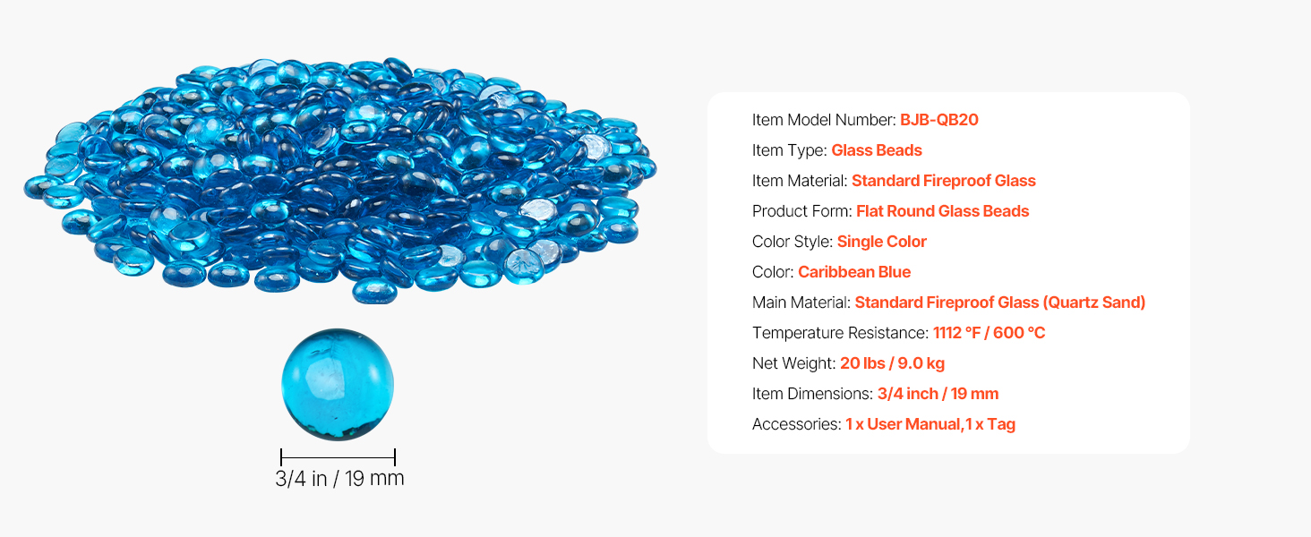 Sklenené korálky do ohňa 20 lbs / 9.0 kg, 3/4-inch / 19.05 mm, modrá
