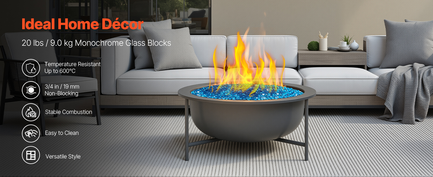 Naše žiarivé, farebné dekoratívne kúsky vyrobené z prvotriedneho ohňového skla sú odolné a zvládajú teplo. Nerozpúšťajú sa, nepraskajú, nevytvárajú dym ani popol. Stačí ich rýchlo utrieť a opäť získajú lesk. Sú ideálne do ohnísk, krbov a záhrad a bez námahy dodajú vášmu domovu iskru.