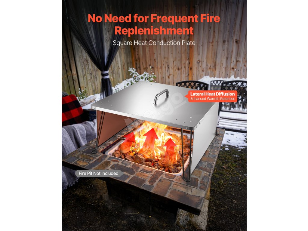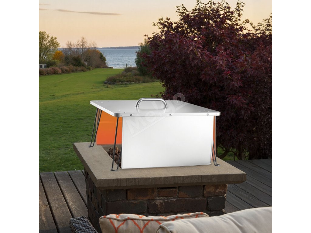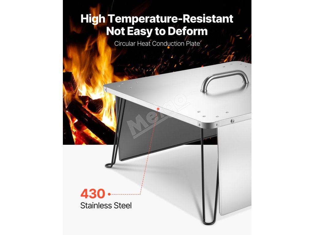 Tepelný štít ohniska má hornú časť z nehrdzavejúcej ocele, je odolný voči teplu a iskrám. Pojme grilovacie siete alebo fóliové podnosy na opekanie marshmallows, sladkých zemiakov alebo malého mäsa. Rovnomerné rozloženie tepla a robustné nohy zabezpečujú spoľahlivé používanie na zábavu pri varení pod holým nebom.