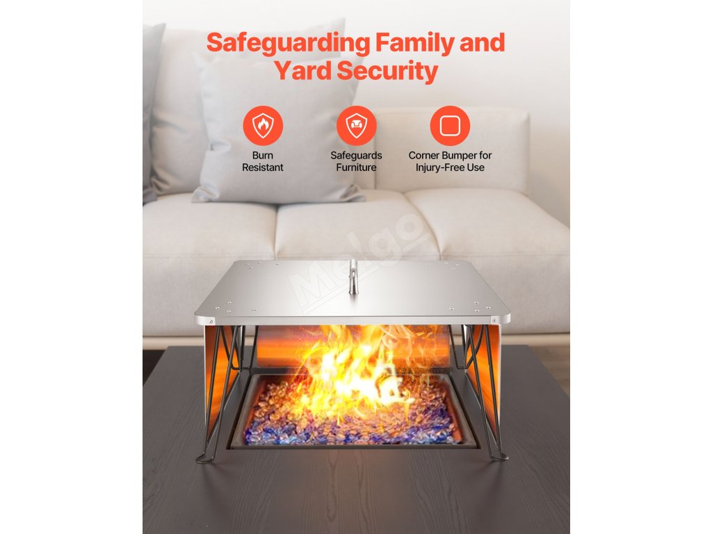 Tepelný deflektor blokuje vysokoteplotné iskry, čím znižuje riziko popálenín a nebezpečenstva požiaru. Umožňuje členom rodiny zhromažďovať sa okolo tepla a zároveň udržiava okolité predmety v bezpečí.