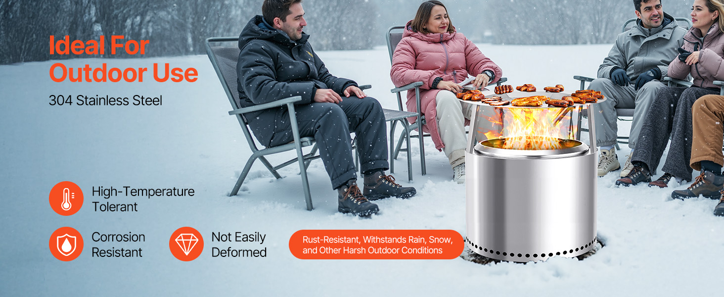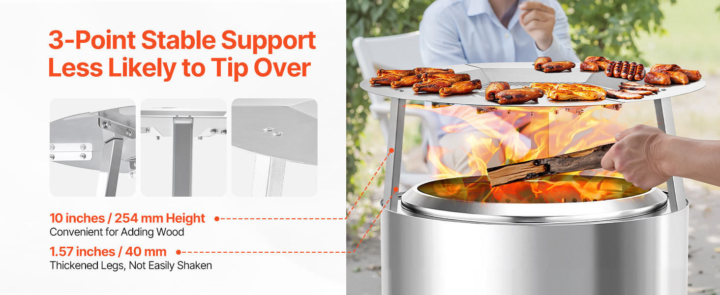 Tepelný štít ohniska má hornú časť z nehrdzavejúcej ocele, je odolný voči teplu a iskrám. Pojme grilovacie siete alebo fóliové podnosy na opekanie marshmallows, sladkých zemiakov alebo malého mäsa. Rovnomerné rozloženie tepla a robustné nohy zabezpečujú spoľahlivé používanie na zábavu pri varení pod holým nebom.
