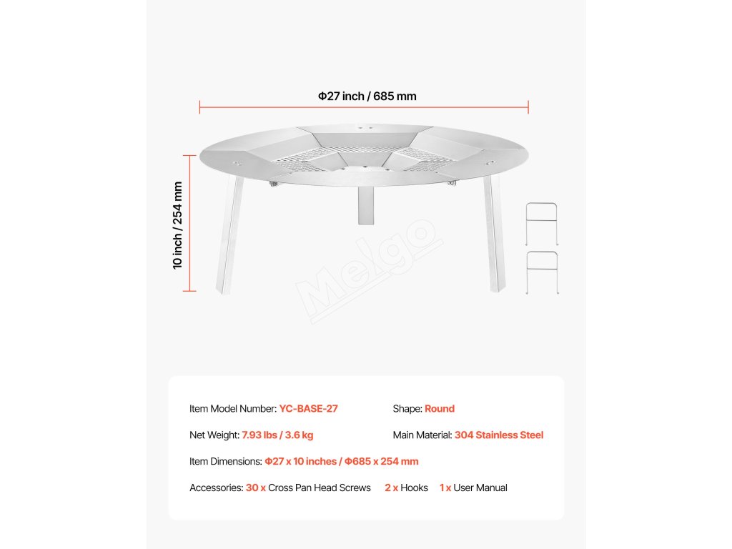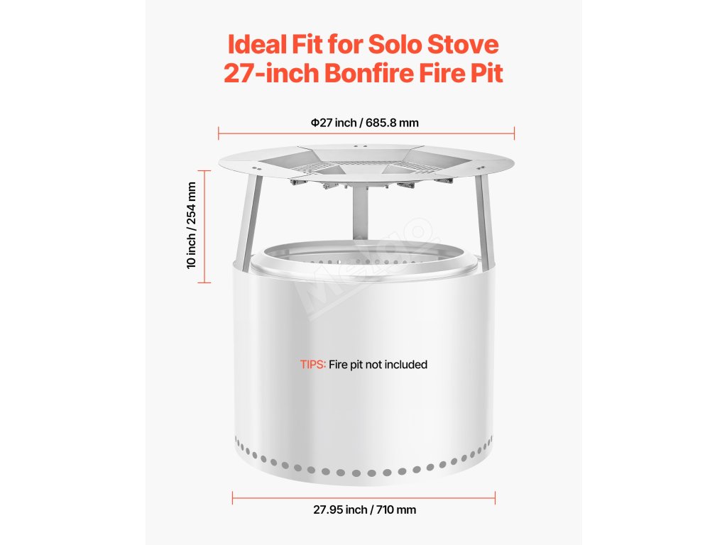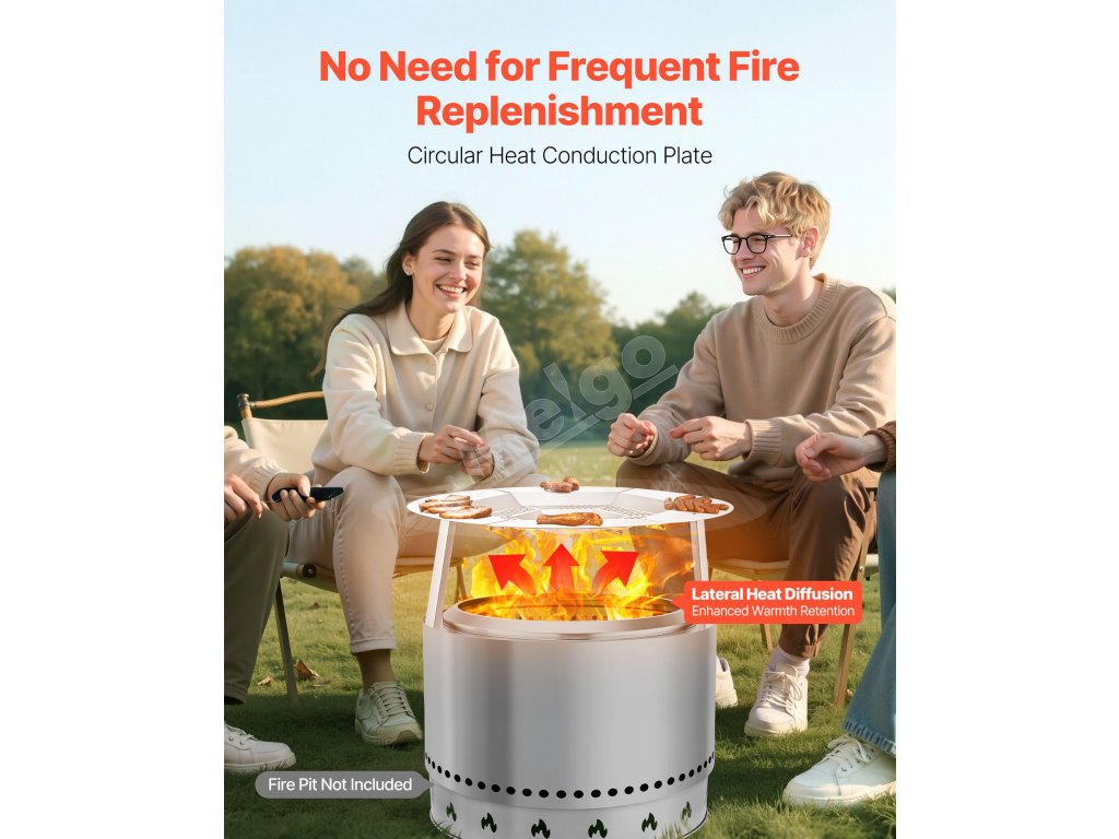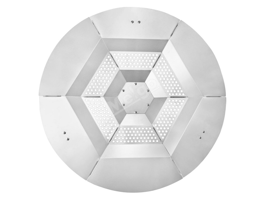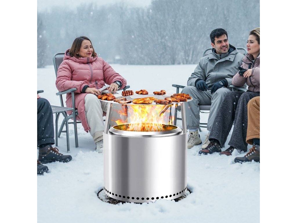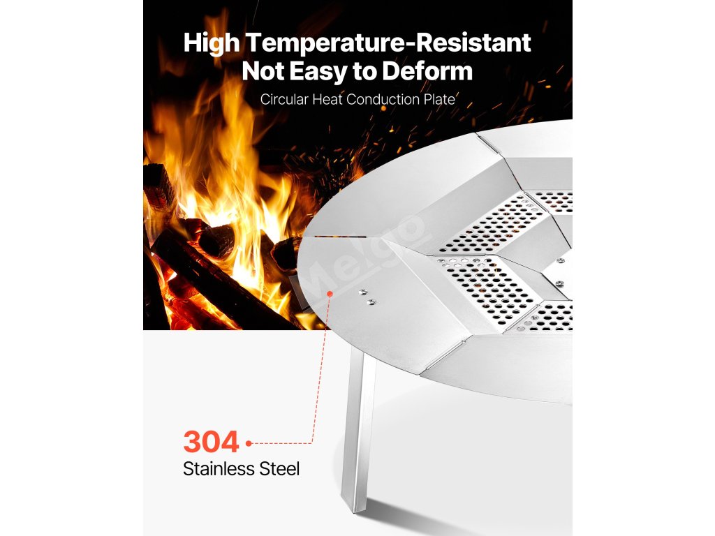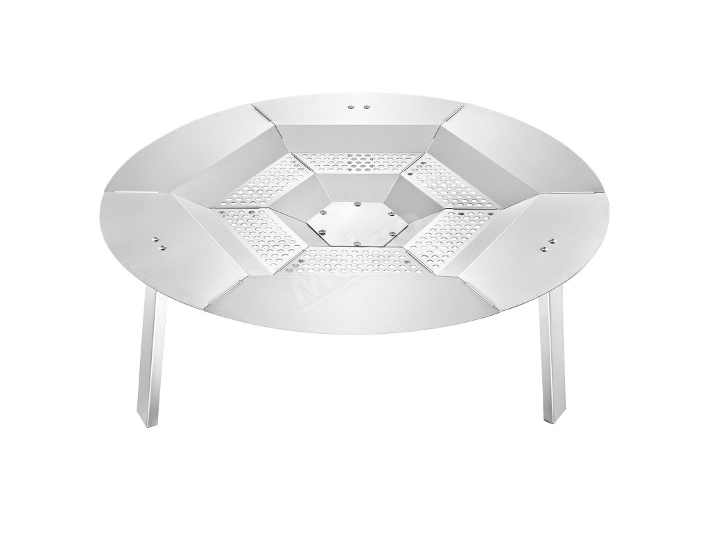 Tepelný štít ohniska má hornú časť z nehrdzavejúcej ocele, je odolný voči teplu a iskrám. Pojme grilovacie siete alebo fóliové podnosy na opekanie marshmallows, sladkých zemiakov alebo malého mäsa. Rovnomerné rozloženie tepla a robustné nohy zabezpečujú spoľahlivé používanie na zábavu pri varení pod holým nebom.