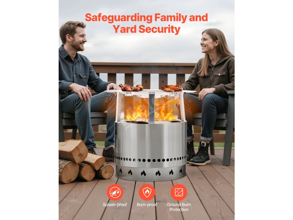 Tepelný deflektor blokuje vysokoteplotné iskry, čím znižuje riziko popálenín a nebezpečenstva požiaru. Umožňuje členom rodiny zhromažďovať sa okolo tepla a zároveň udržiava okolité predmety v bezpečí.