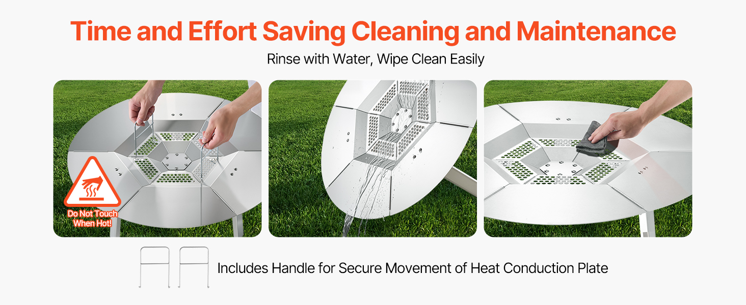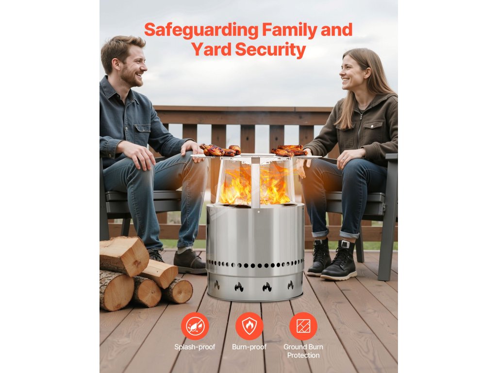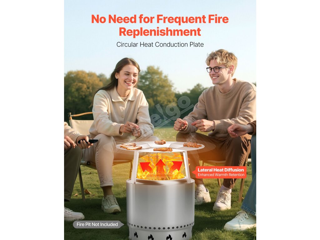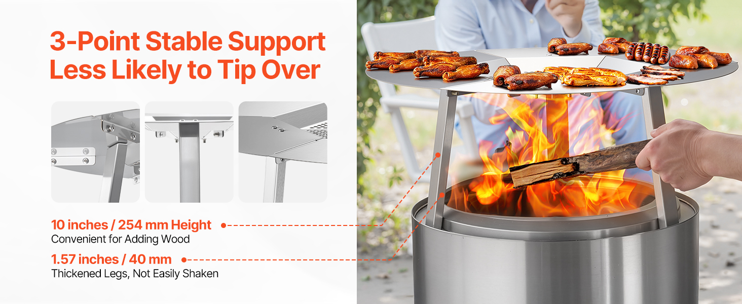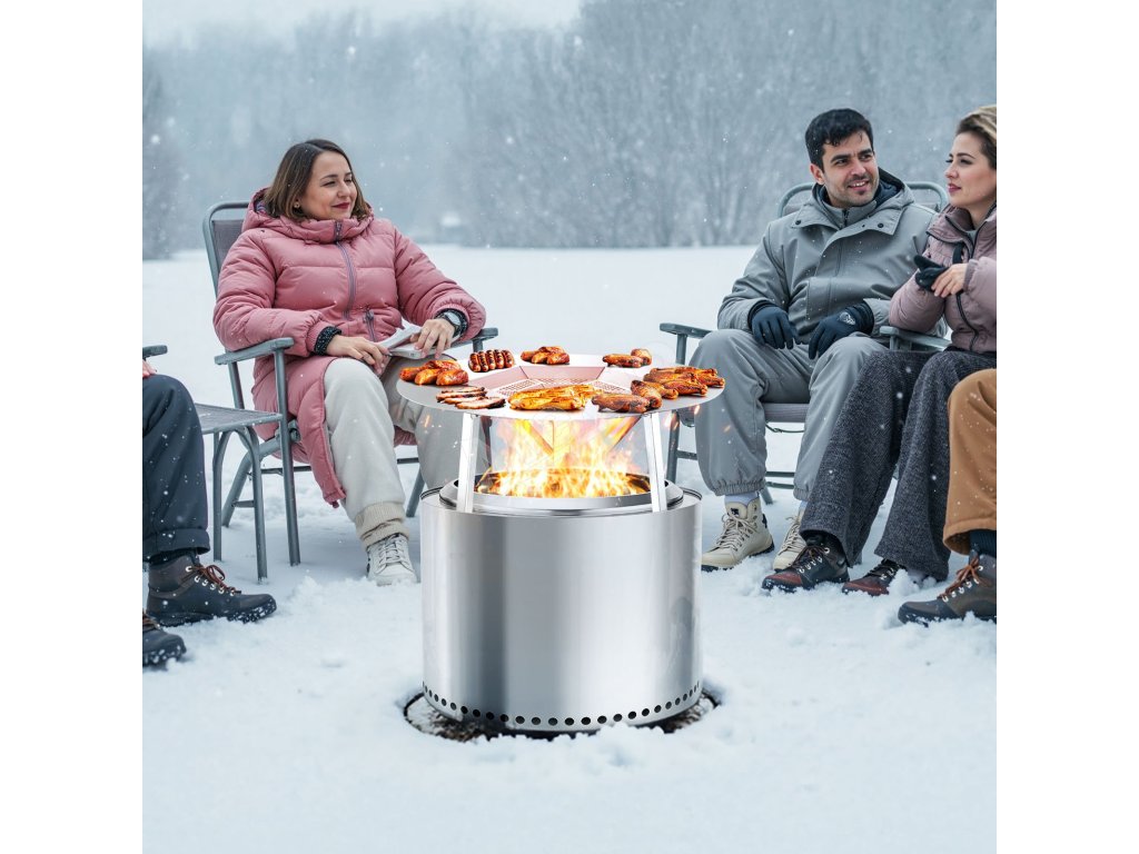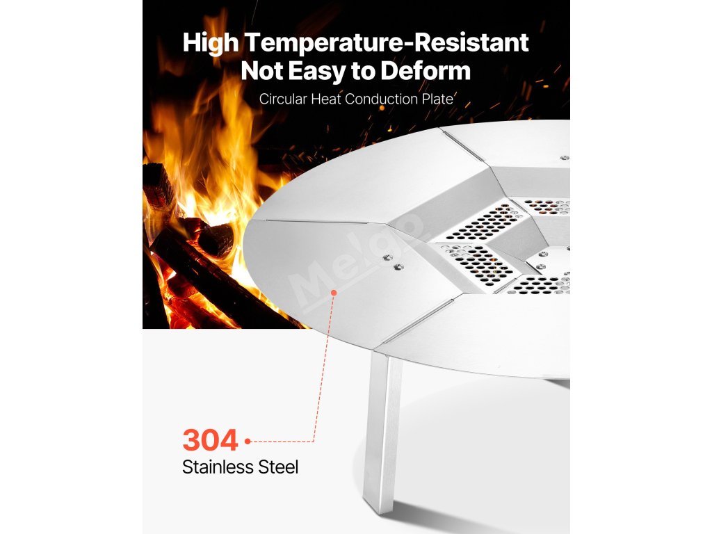 Tepelný štít ohniska má hornú časť z nehrdzavejúcej ocele, je odolný voči teplu a iskrám. Pojme grilovacie siete alebo fóliové podnosy na opekanie marshmallows, sladkých zemiakov alebo malého mäsa. Rovnomerné rozloženie tepla a robustné nohy zabezpečujú spoľahlivé používanie na zábavu pri varení pod holým nebom.