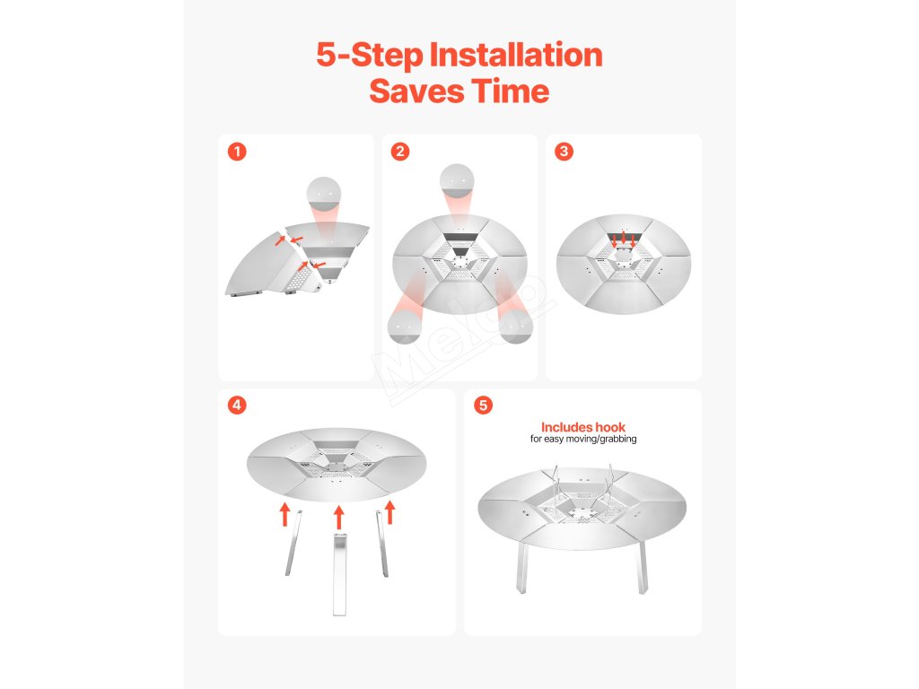 Vďaka odolnosti proti hrdzi a teplu zostáva tento tepelný deflektor stabilný za každého počasia, od daždivých dní až po chladnú zimu. Zaručuje, že vaše ohnisko bude poskytovať teplo každý deň po dlhý čas.