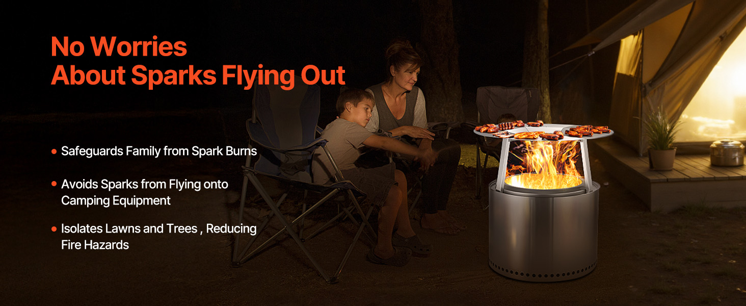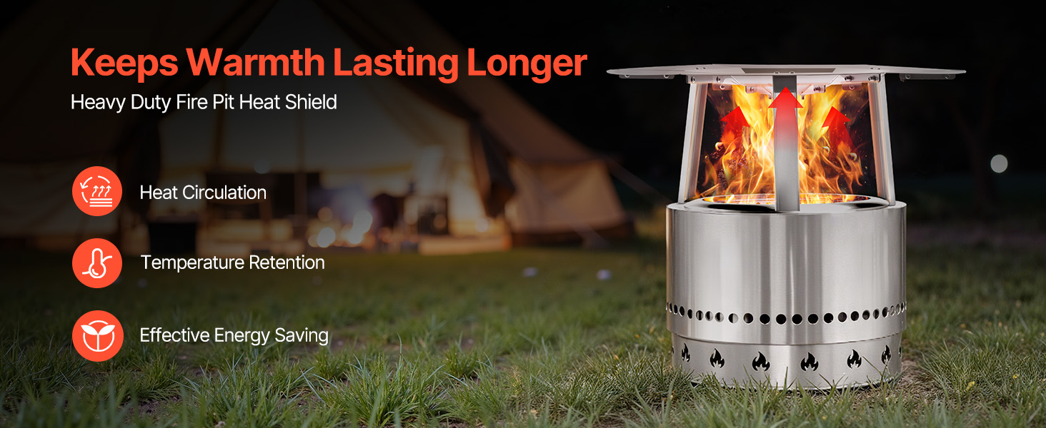 Tepelný deflektor blokuje vysokoteplotné iskry, čím znižuje riziko popálenín a nebezpečenstva požiaru. Umožňuje členom rodiny zhromažďovať sa okolo tepla a zároveň udržiava okolité predmety v bezpečí.