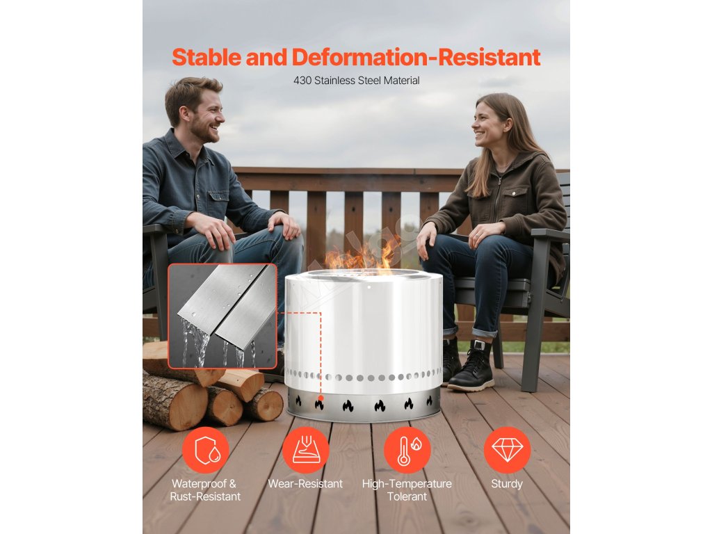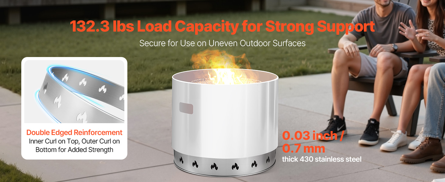 Vyrobené z nehrdzavejúcej ocele odolnej voči vysokým teplotám, nedeformuje sa ani nekoroduje ani pri dlhodobom používaní v exteriéri, čo zaručuje, že vaše ohnisko zostane stabilné a trvácne.