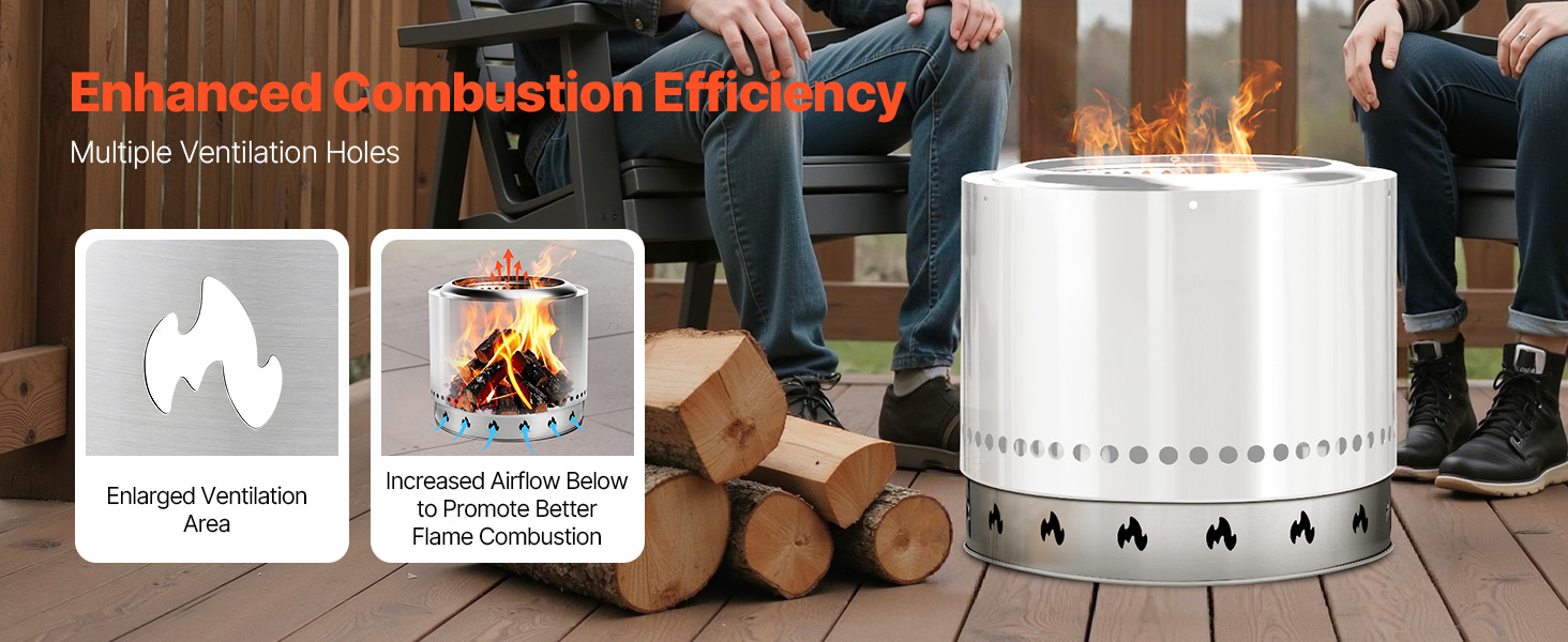 Premyslený dizajn výrazne zlepšuje prúdenie vzduchu, čím sa zvyšuje účinnosť spaľovania. Poskytuje efektívnejší a pohodlnejší zážitok z táboráka, vďaka čomu si môžete vychutnať teplo a atmosféru.
