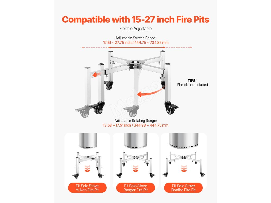Stojan na ohnisko nastaviteľný 38–68,6 cm, 4 kolieska, nerezový