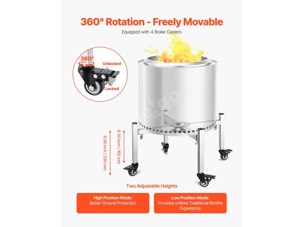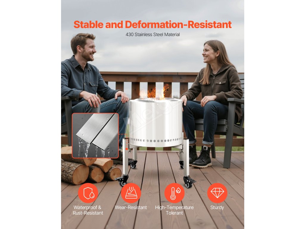 Vyrobené z nehrdzavejúcej ocele odolnej voči vysokým teplotám, nedeformuje sa ani nekoroduje ani pri dlhodobom používaní v exteriéri, čo zaručuje, že vaše ohnisko zostane stabilné a trvácne.