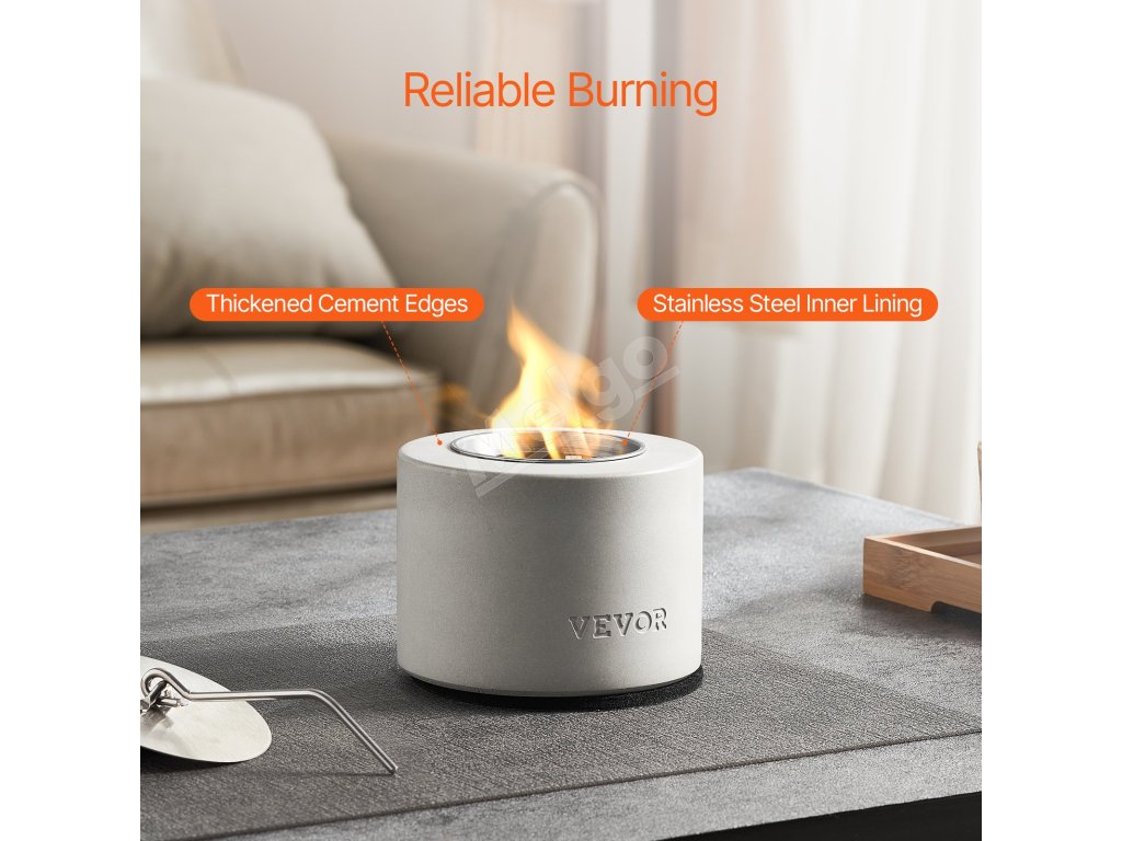 Stolové ohnisko z betónu, prenosný horák na lieh, valcové, s krytom