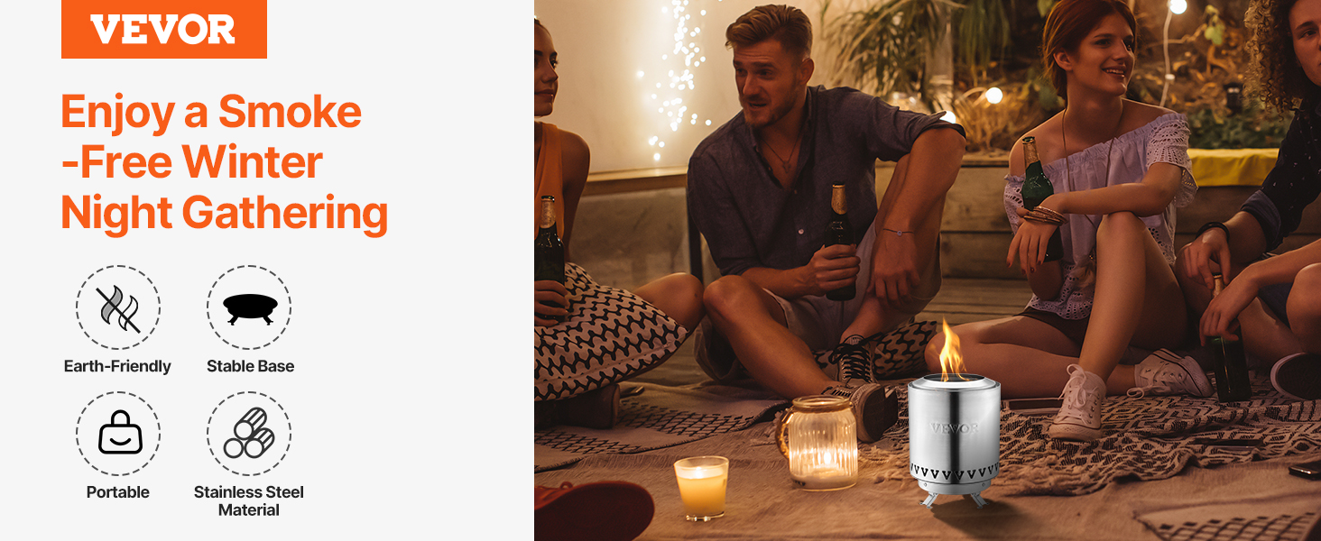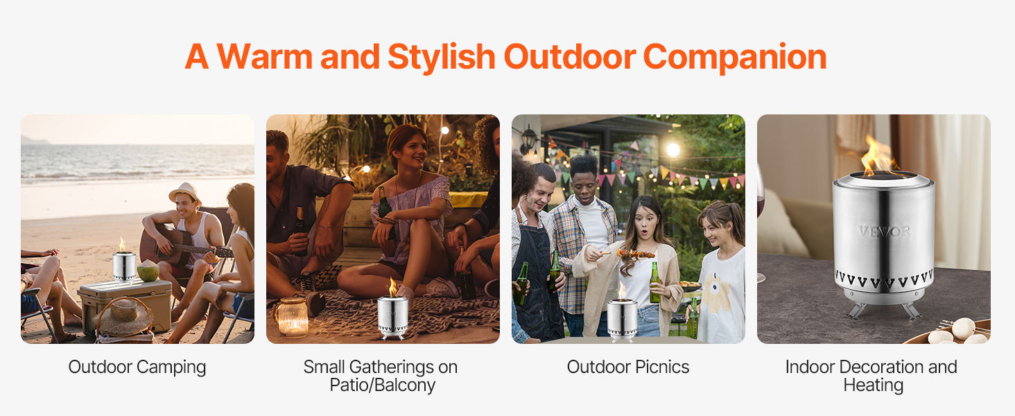 Toto účinné stolové ohnisko má bezdymovú konštrukciu pre nepretržité horenie. Jeho stabilná základňa zaisťuje bezpečné používanie, vďaka čomu je ideálnym spoločníkom do prírody. Prináša teplo a atmosféru na stretnutia, takže je ideálnou voľbou pre rodinu a priateľov, ktorí si môžu spoločne užívať.