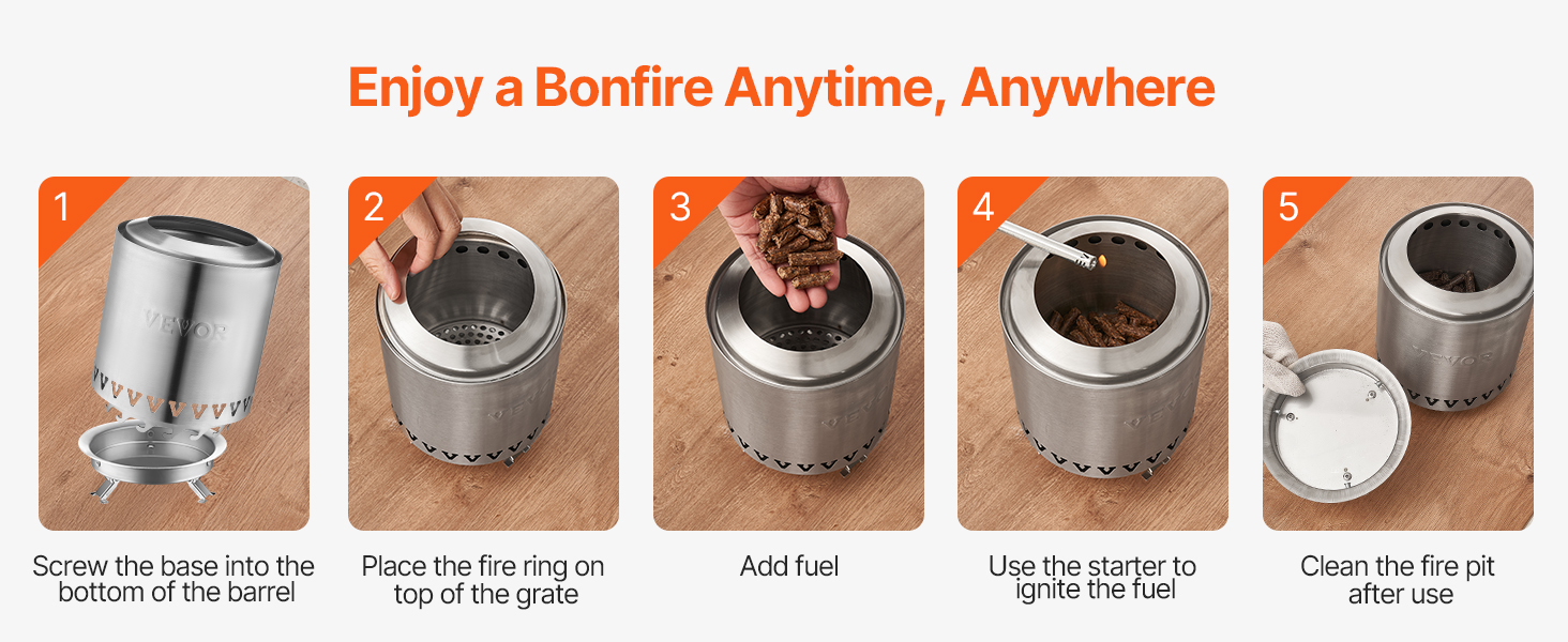 Vychutnajte si čaro táborového ohňa s týmto stolným ohniskom! Jednoducho vložte ohnisko do základne, pridajte palivo, zapáľte ho zapaľovačom a po skončení ho vyčistite - je to také jednoduché!