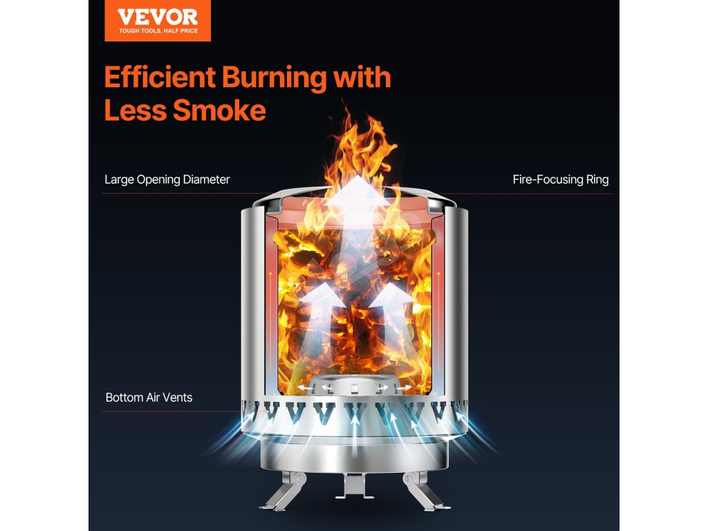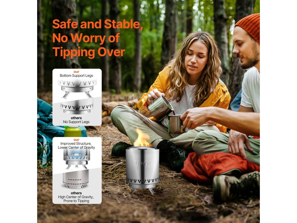 Toto účinné stolové ohnisko má bezdymovú konštrukciu pre nepretržité horenie. Jeho stabilná základňa zaisťuje bezpečné používanie, vďaka čomu je ideálnym spoločníkom do prírody. Prináša teplo a atmosféru na stretnutia, takže je ideálnou voľbou pre rodinu a priateľov, ktorí si môžu spoločne užívať.